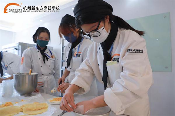 为了能在餐饮业有所发展而选择学一技之长;如果你是这种目的,选择杭州新东方的中短期就非常合适了,学习时长1个月,3个月,6个月等等可以根据自己的需求选择,创业时可提供帮扶,助你轻松创业!
