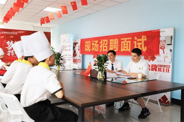 学校每年都会定期举办大型校园人才双选会,邀请众多知名餐饮企业HR负责人、厨务负责人现场招聘,学生现场即可选定心仪的就业单位进行面试,面试通过企业当场将offer送至学生手中。