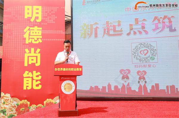 仪式伊始,杭州新东方职业学校校长助理付顺洪上台致词。他说:“今天,我们在这里举行“新起点筑梦公益”助学行动,传递的是杭州新东方职业学校的关怀和温暖,凝结着腾讯公益的关爱和期待,承载着学子们的未来和希望。”
