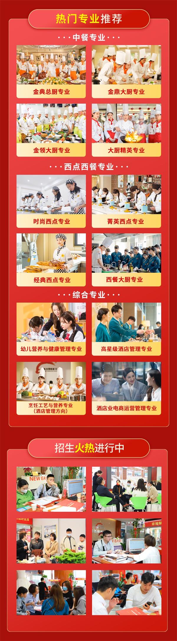 杭州新东方职业学校作为专注应用型人才培养的职业技能教育学府,是中式烹调师、西式烹调师、幼儿营养与健康管理、高星级酒店管理、烹饪工艺与营养、酒店业电商运营管理等人才的培训基地。学校环境优美,交通便利,拥有一支素质高、技术强、教学精的骨干专业师资队伍,教学设施完善,建有高水准的实习大厅、演示大厅、标准化的理实一体化教室、现代化的模拟厨房、西点教室、西餐教室、面点教室、刀工大厅、翻锅大厅等一应俱全。理论加实操的教学模式,丰富多彩的校园文化生活,将学生培养成符合社会需要的专业复合型人才,是莘莘学子健康成才、追求技能教育的理想学府。