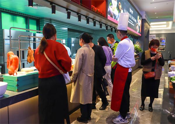 走进企业,杭州新东方职业学校一行人受到了企业领导及工作人员的热烈欢迎。企业负责人带着大家参观了大厅、包房、餐台等区域,并从菜品研发、餐厅布局、风格打造、后厨管理、职员培训和人才培养储备、设备食材采购管理等方面全方位地进行经验分享。参学老师边看边学、边听边想,体验到了名城名宴独具特色的运行模式、经营理念及行业氛围。