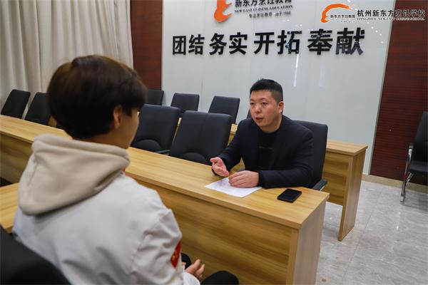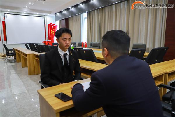 杭州新东方职业学校创就业负责人为金典总厨2004、2005班的学子们举行了岗前模拟面试,旨在帮助同学们突破面试难关,锻炼他们的表达能力和现场应变能力,真切感受职场面试的氛围,切身了解到不同职位的基本素质和技能等要求。
