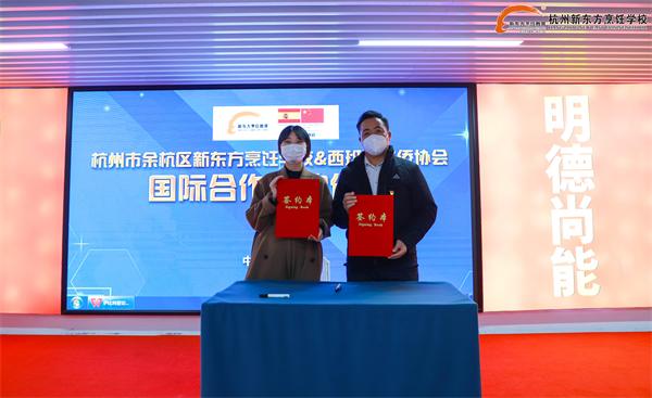 2022年12月16日下午,杭州新东方职业学校与西班牙协会杭州搬腿人科技有限公司举行了国际合作签约仪式。我校领导付顺洪、西班牙华侨协会杭州搬腿人科技有限公司总经理项思媚、金牌讲师曾盈华、金牌切腿师唐志刚出席了本次签约仪式!