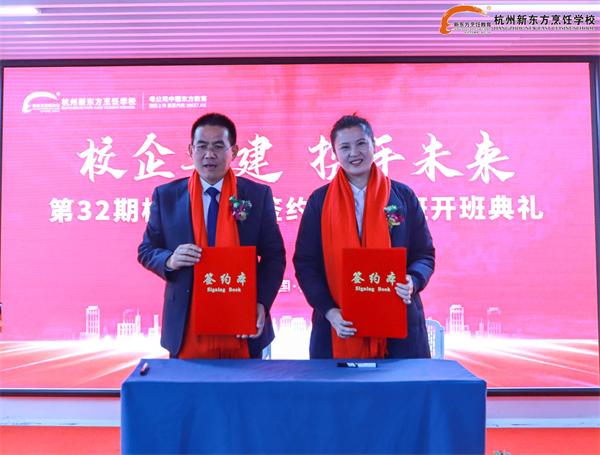 校企联袂,同舟共济话双赢;定向培养,齐心协力谋发展。2023年2月6日上午,杭州新东方职业学校第32期校企合作签约暨定向班开班典礼隆重举行。