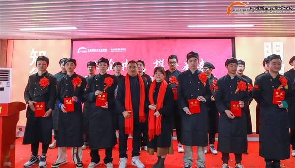较后,上海布朗石餐饮管理有限公司申总上台为我校西餐主厨2101班的同学们正冠并颁发企业定向班聘书。相信通过校企合作定向班的优质平台,杭州新东方职业学校的同学们将学有所成,学有所用,实现理想人生!