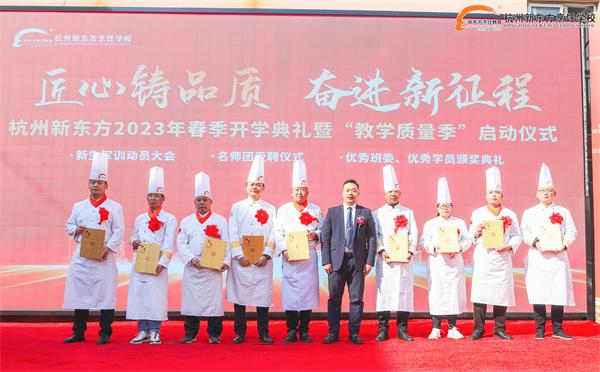 “名师出高徒,强将无弱兵”,为了进一步壮大杭州新东方职业学校的师资队伍,提高教学质量,更好地培养较好的烹饪人才,同时满足青年学子渴望结识行业大咖的愿望。我校现场聘任9名老师为2023年春季名师团成员并授予他们聘书,明确了培养目标,并制定培养计划,提供相应学习和锻炼的机会,促进学校职业教学的可持续发展。