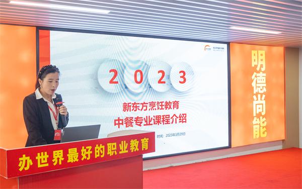 隆聚餐饮集团人力资源总监杨炯就中国餐饮的发展趋势及隆聚餐饮集团产品流行趋势进行全面的解读。中国东方教育集团烹饪事业部研究院经理柯国君从中餐专业基本概况、中餐专业理论和实训课程结构、专业综合考评等方面对学校中餐研发进行了详细介绍。