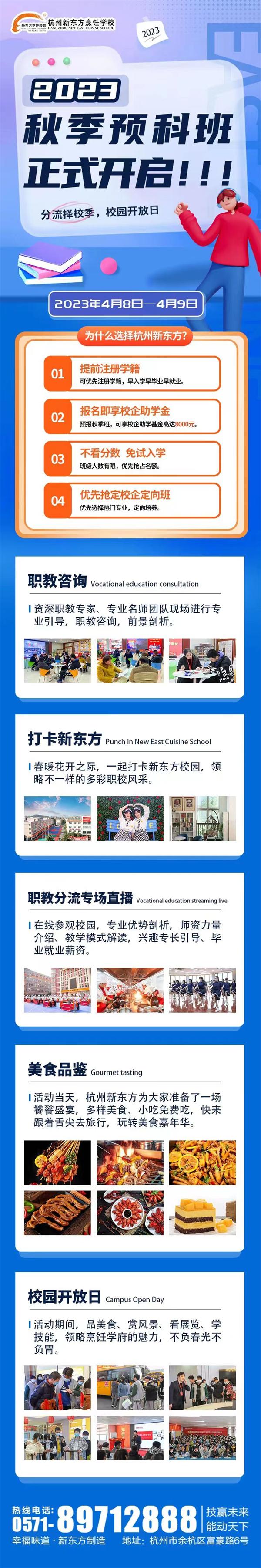 值此秋季预科班正式开启的关键时刻,杭州新东方特举办校园开放日活动,这个周末来杭州新东方职业学校参观咨询,打卡校园,随堂试学,多样美食,免费品尝。现场更有资深职教老师为大家答疑解惑。无法到场的同学们也可以线上观看职教分流专场直播,云游校园。