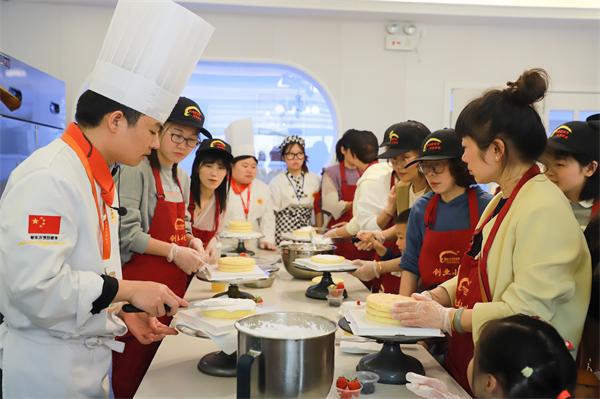 甜点,好似生活的调味剂。在奔波忙碌的日子里,不用去读心灵鸡汤,只需将自己对生活的爱,一点点调和、一点点发酵、一点点烘焙,给味蕾一次小小的“宠溺”,便能恢复满满的正能量。在我校西点老师的指导下,大家纷纷化身甜点大师,发挥着各自的想象力与创造力,用灵巧的双手和无限的创意,做出了各具风格的水果蛋糕,满屋飘散的甜蜜香气萦绕在每个人鼻尖。