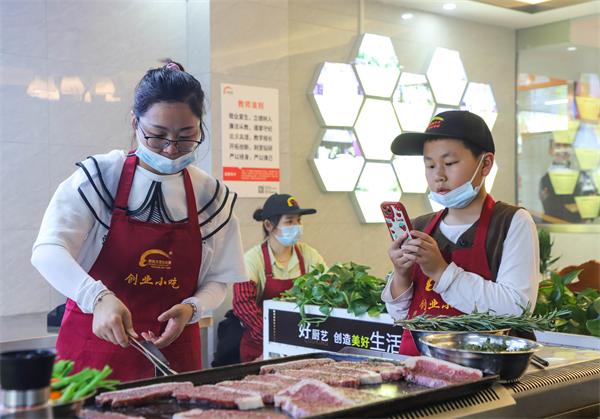 生活就要风情万种,如神秘浪漫的巴黎,如优雅精致的法餐。在我校西餐大厨的教学下,老师们体验了菲力牛排和黑椒牛柳意面的制作。解冻、腌制、融化黄油、文火慢煎,顷刻间,油脂跳跃轻舞,牛排在烤架上滋滋轻唱,意面一根根裹满酱汁,黑椒香气满屋飘散。这样平凡的烟火气治愈了在场每一个人疲惫的心。