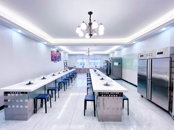 杭州新东方职业学校西点教室宽敞、整洁、明亮,设备一应俱全。包涵烤箱、奶油搅拌机、冷藏箱、开酥机等设备。全实操情景化教学模式,确保学员人手一机全程实操。