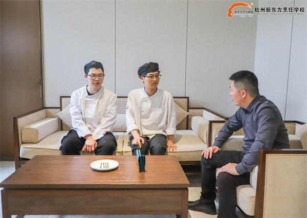 “在杭州新东方学习的时候,我们从什么都不会到一步步入门,之后彻底喜欢上烹饪这个行业,真的很感激学校的培养。现在在单位我们一切都好,就是很想念学校、老师和同学,同时也希望学弟学妹们能勤加练习基本功,争取更好的出路......”