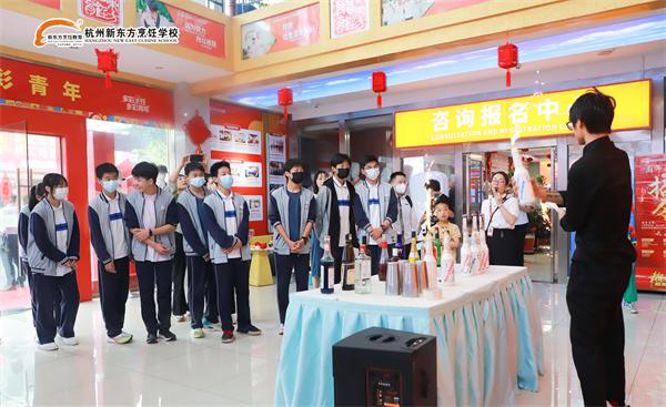 清早,40名中泰中学的同学们在乘坐专车到达我校后,受到了杭州新东方职业学校一众师生的热烈欢迎,欢迎仪式结束后,大家在我校老师的带领下参观游览校园,中餐学生熟练的翻锅姿势,西点教室香甜精致的蛋糕,明亮的实训大厅,多彩的西点教室等都让前来参观的同学们感到新奇。