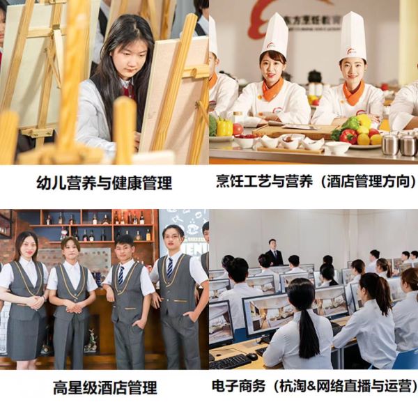 杭州新东方开设有中餐、西点西餐、幼儿营养与健康管理、高星级酒店管理、烹饪工艺与营养(酒店管理方向)、电子商务(杭淘&网络直播与运营)等专业,我校注重理论与实践相结合,通过系统的课程安排和实践训练,培养学生成为具有扎实专业技能的高质量人才。