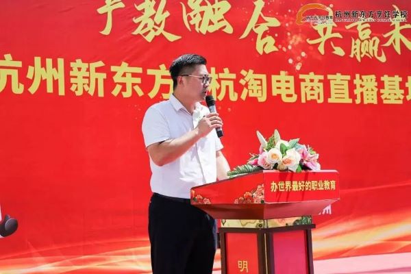 接着,杭州新东方校长汪巧林上台致辞,“此次与杭淘直播基地的合作,标志着我们将电商直播引入到餐饮发展领域迈出了坚实的一步。杭淘直播基地作为直播行业的佼佼者,拥有丰富的直播资源和无限的实践经验。这次合作让我们更加坚信,只要拥有梦想和努力,就能够创造辉煌。这次合作将为每一个在校学子提供更多有力支持,为他们绘制出一张美满蓝图。