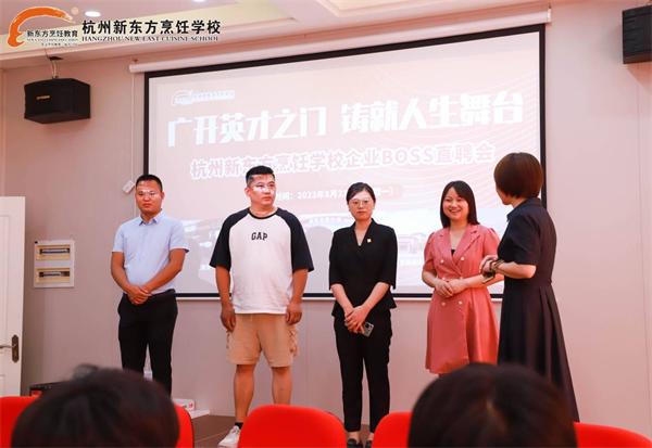 为了实现杭州新东方职业学校“稳岗位、扩渠道、提技能、促匹配”的创就业工作目标,为毕业生提供更好的就业服务和机会,进一步促进人才培养的共赢,我校于8月21日举办了一场盛大的企业BOSS直聘会。此次活动,特邀浙江隆聚餐饮集团、胖哥俩肉蟹煲、湘先生米小姐连锁餐饮集团、吼堂老火锅等企业到校招聘,为学子们打开了广阔的就业之门。