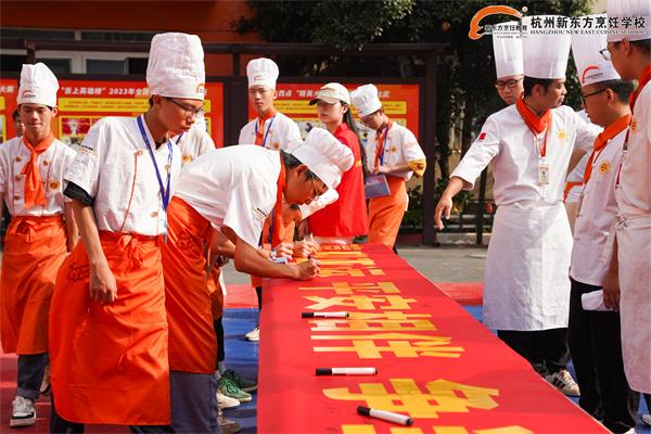 为筑牢安全守护屏障,全力护航杭州亚运会。杭州新东方职业学校联合余杭瓶窑派出所组建了“亚运平安志愿者”志愿服务大队,并为此启动了签约仪式,动员和凝聚同学们来服务社会、奉献爱心、协助城市运行平安和谐、通行有序,为“绿色、智能、节俭、文明”亚运助力。